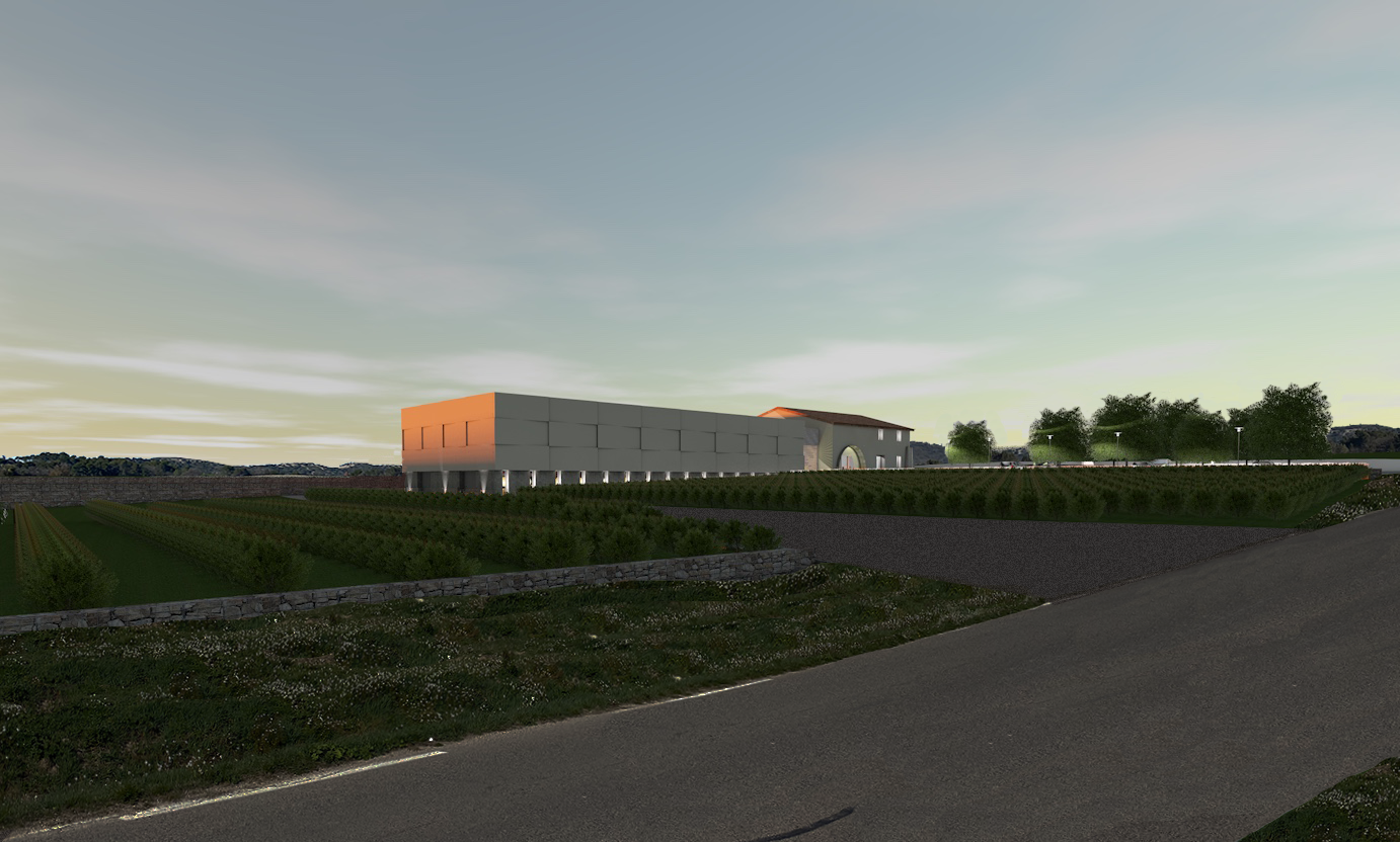 Bâtiment contemporain et monolithique ancré dans le sol de basalte. Contre-point sobre et complémentaire du château, symbole du vignoble et de la qualité de ses vins.